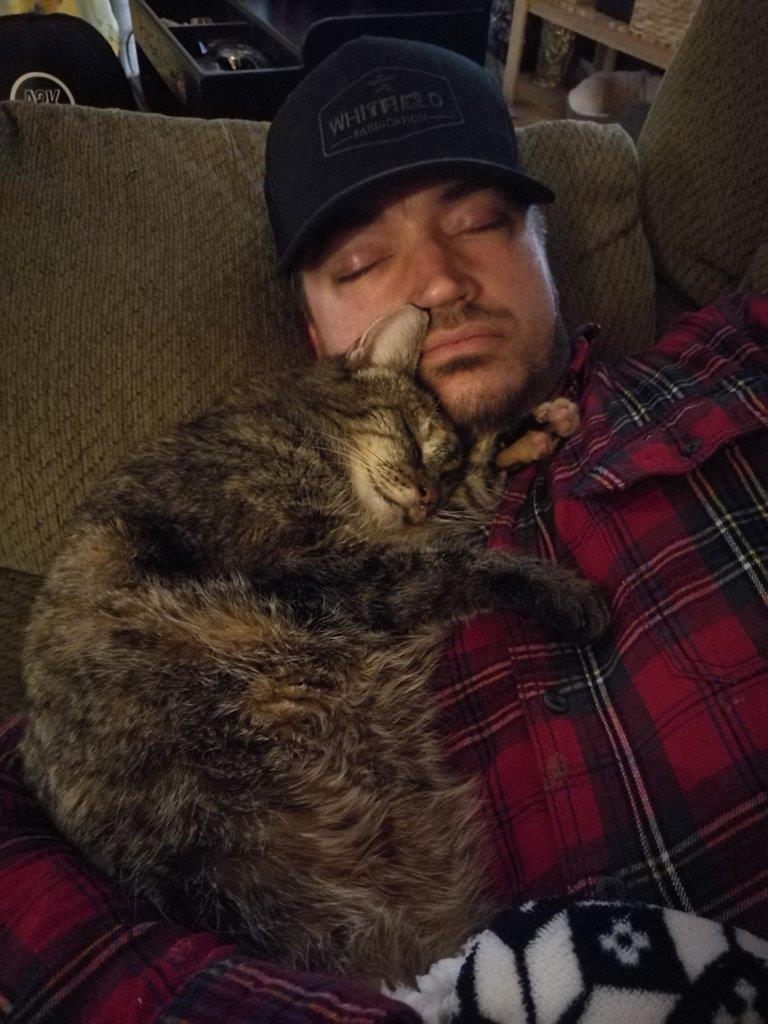 bella cat nasal tumor hugging her dad