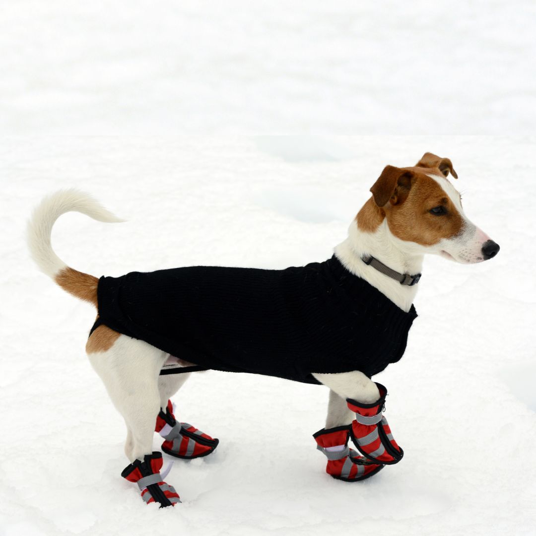 Using dog shoes can offer physical protection from the elements, as well as de-icing chemicals, which can quickly irritate the skin. If your dog is wearing boots – especially during long walks or hikes – check their paws occasionally to make sure everything looks comfortable and dry. Generally, a dog should not wear booties for longer than 2 – 4 hours.