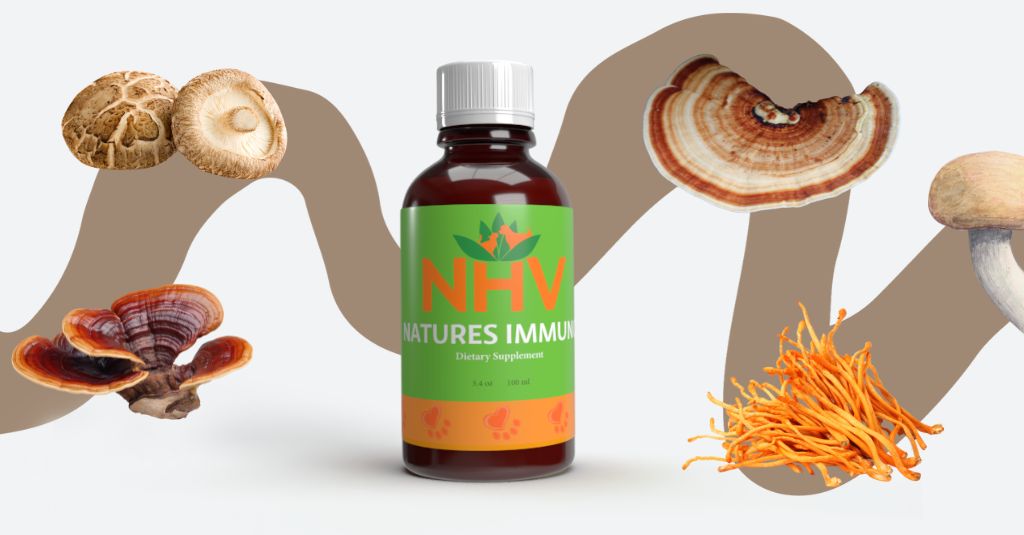 NHV Natures Immuno contains 5 medicinal mushrooms that have been extensively studied for their abilities to help support the immune system: Turkey Tail, Cordyceps, Reishi, Shiitake, and Agaricus.