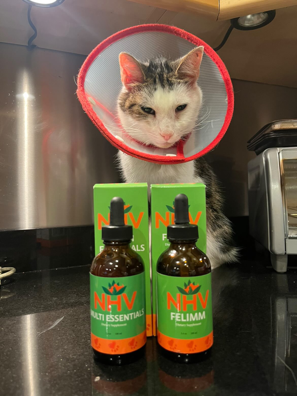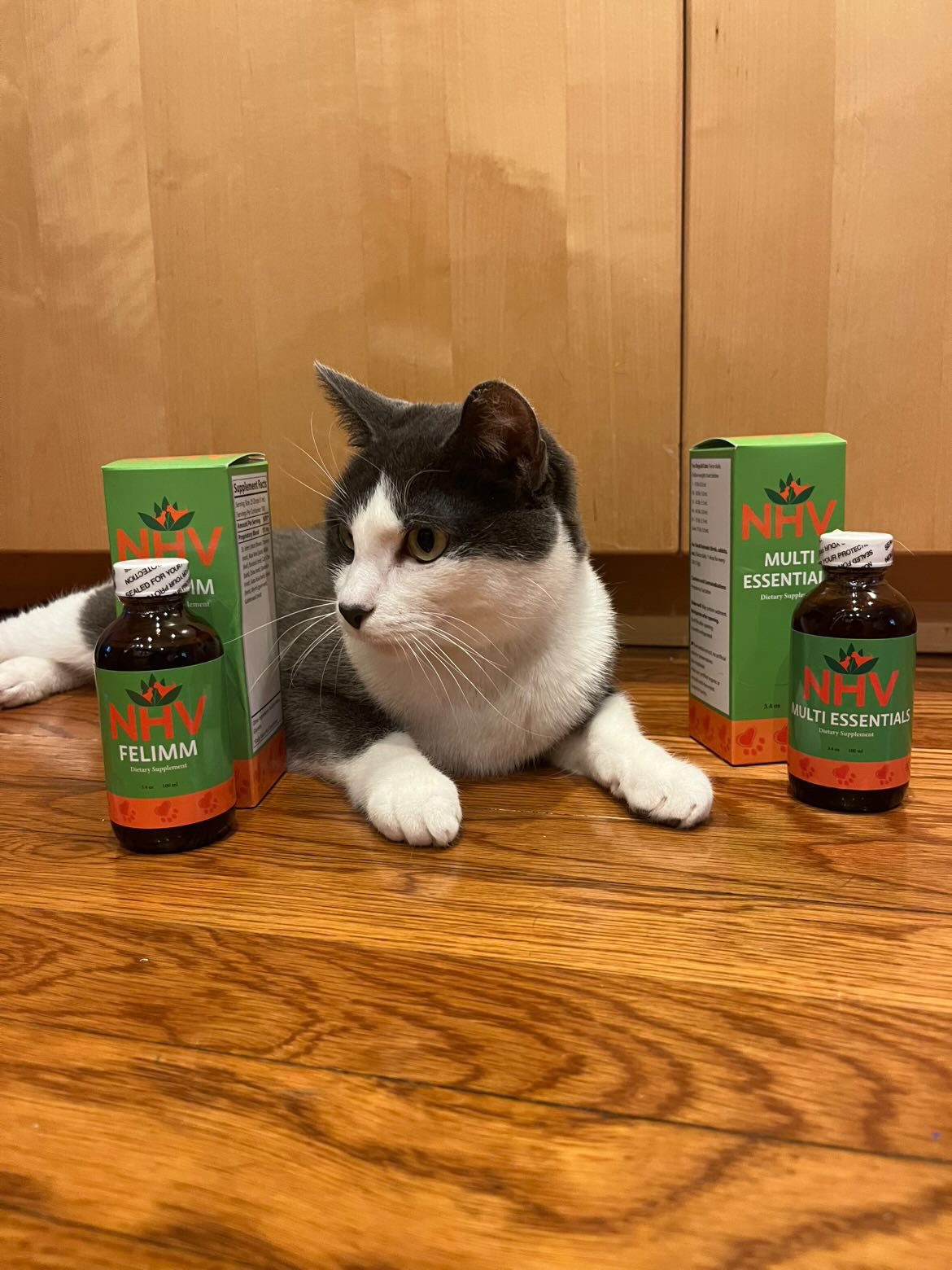 Getting involved in her fur kiddo’s wellness meant giving him two new supplements: NHV Felimm and NHV Multi Essentials each day.