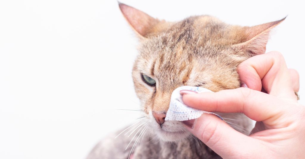 When the conjunctiva becomes inflamed, it swells and can turn red or pink, which is why the condition is often called ‘cat pink eye.” The eye may also start producing excess tears or discharge as the body tries to protect it.