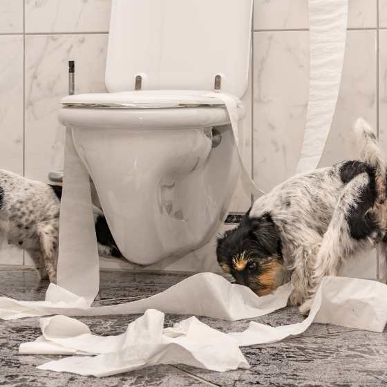 Home » Pet Care Tips » Vet Tech Rounds: How To Pet-Proof Your Home » dogs-bathroom-bad